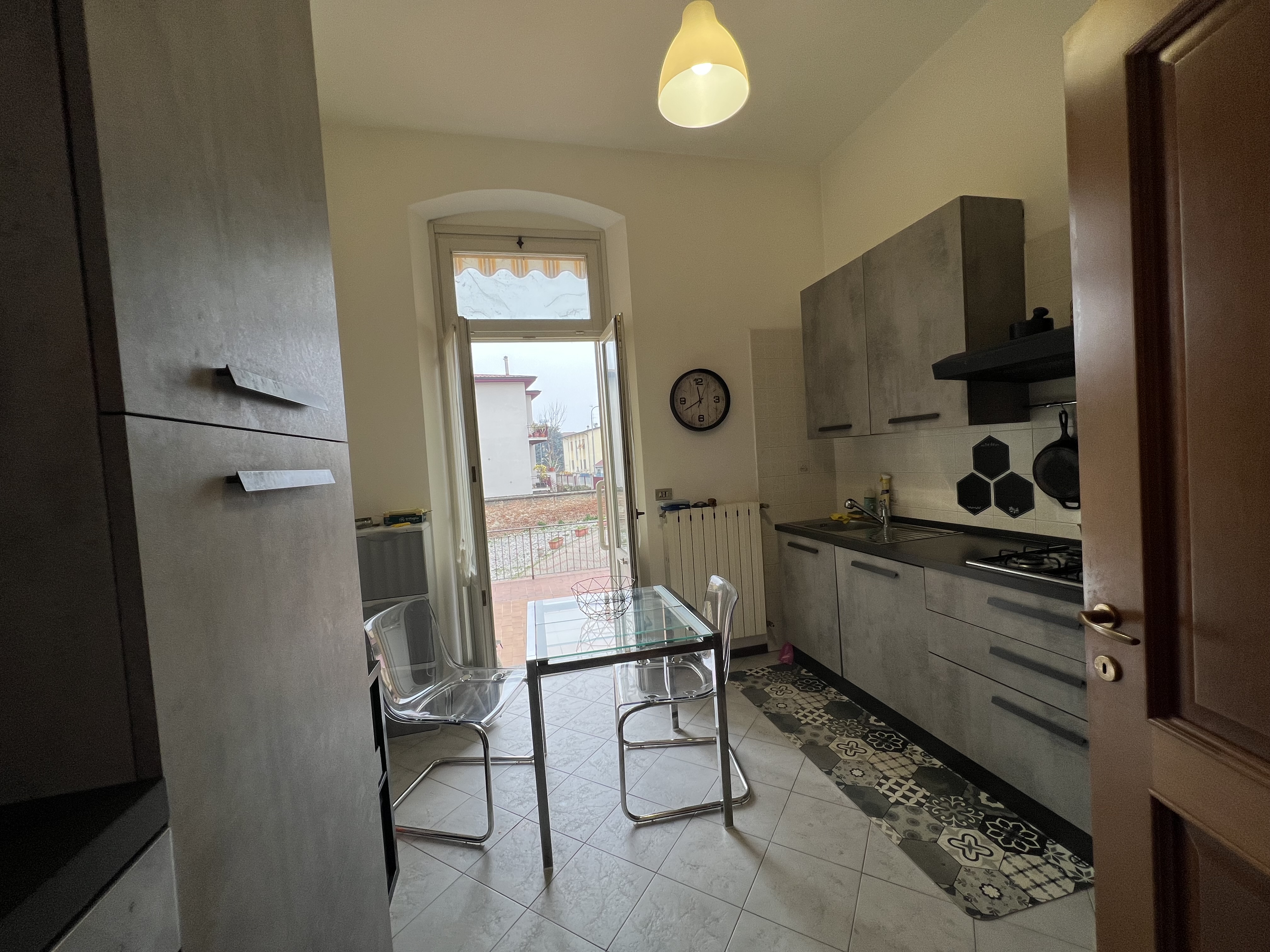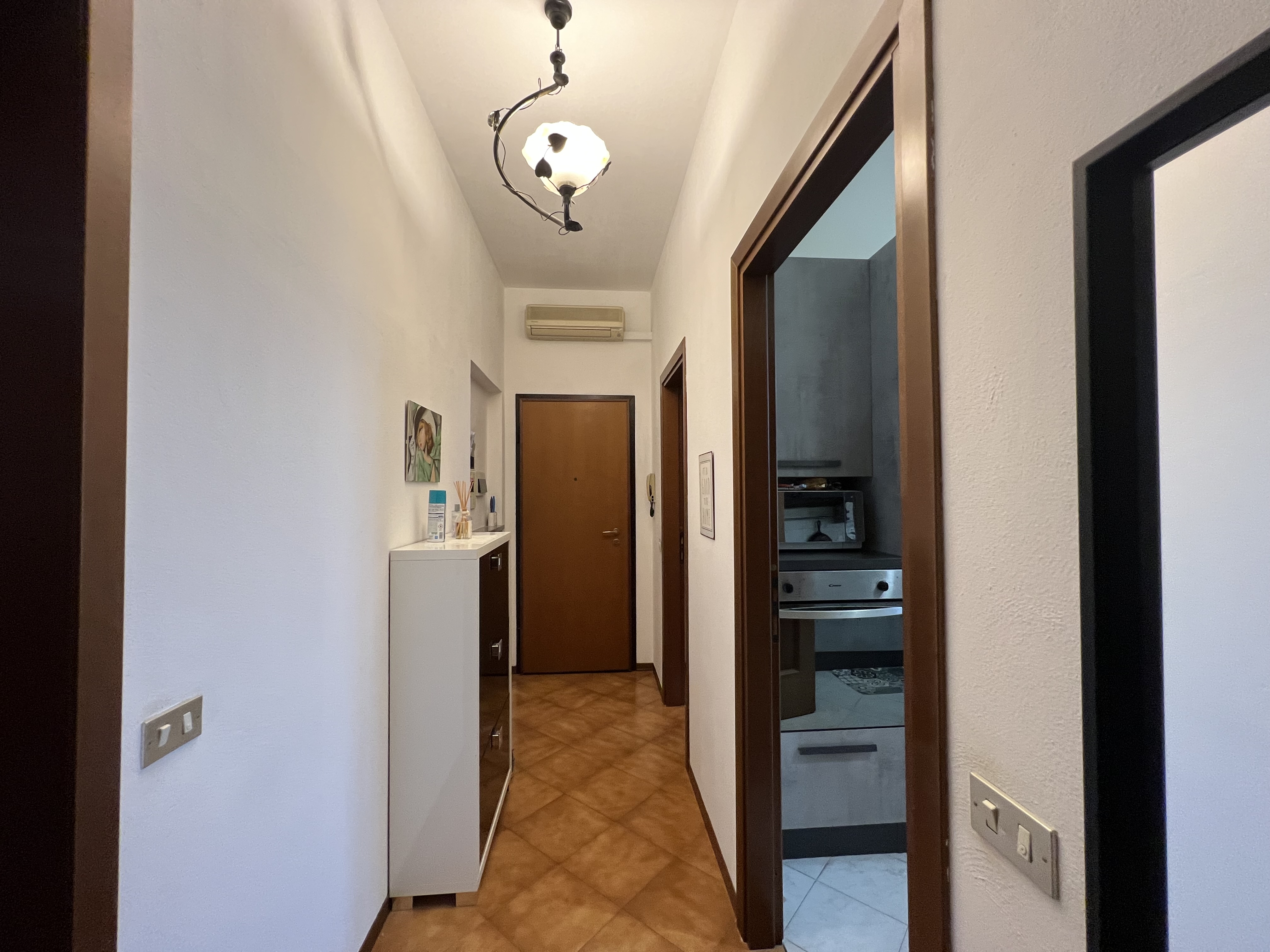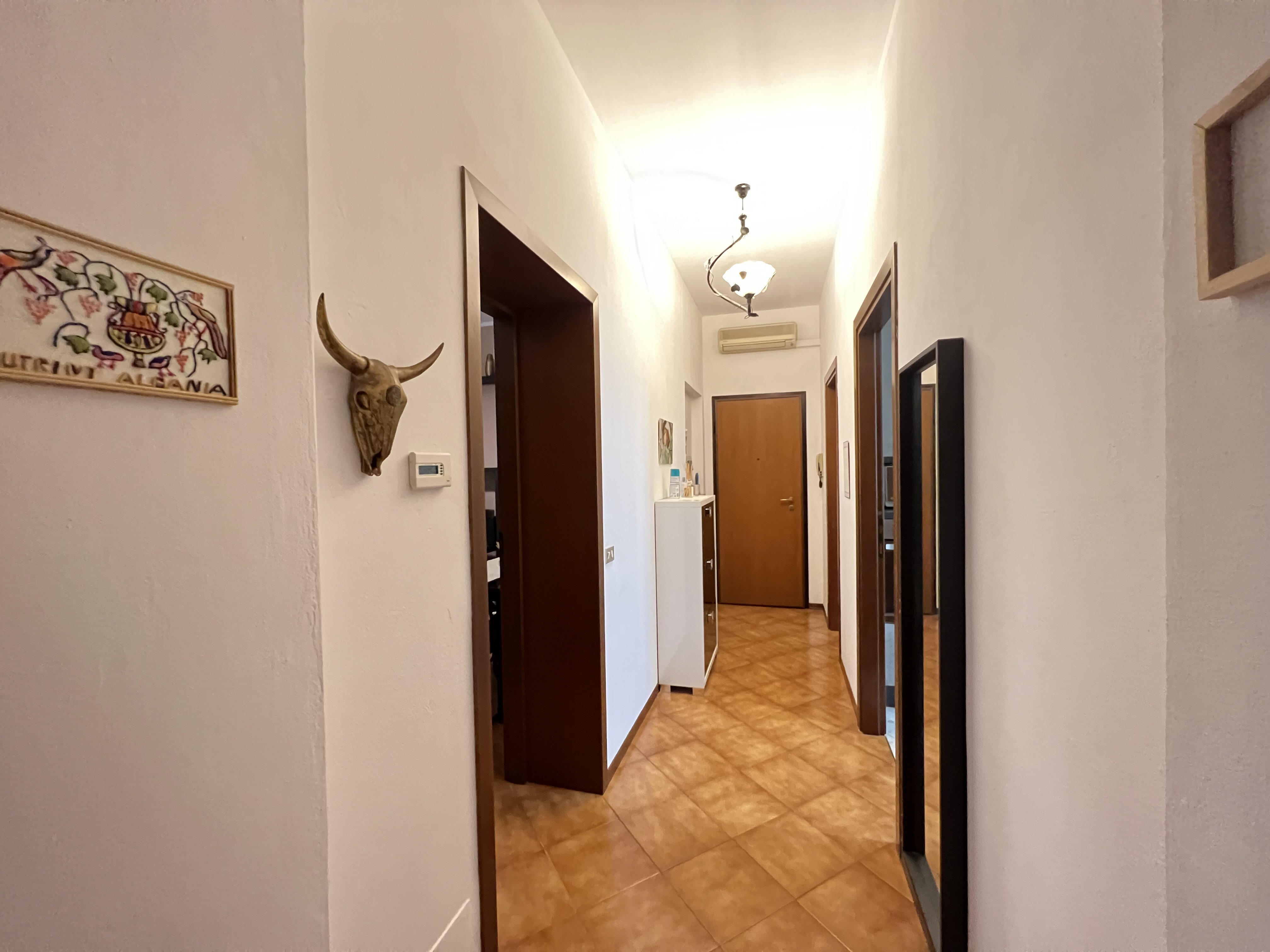 Luminoso appartamento in piccola palazzina signorile e composto da ingresso, corridoio, soggiorno ampio, cucina abitabile con terrazza ampia, due camere letto, bagno, garage doppio e cantina.