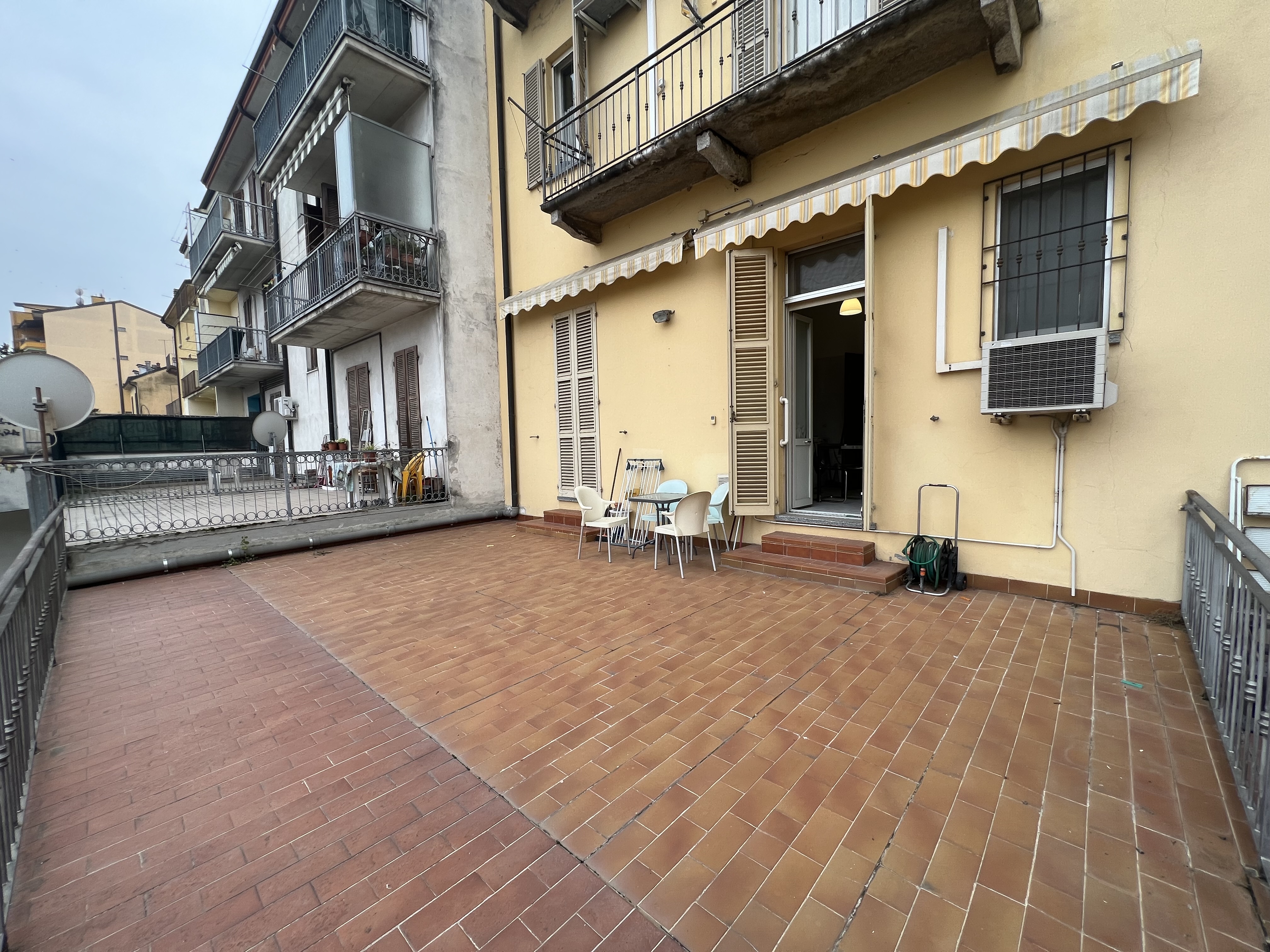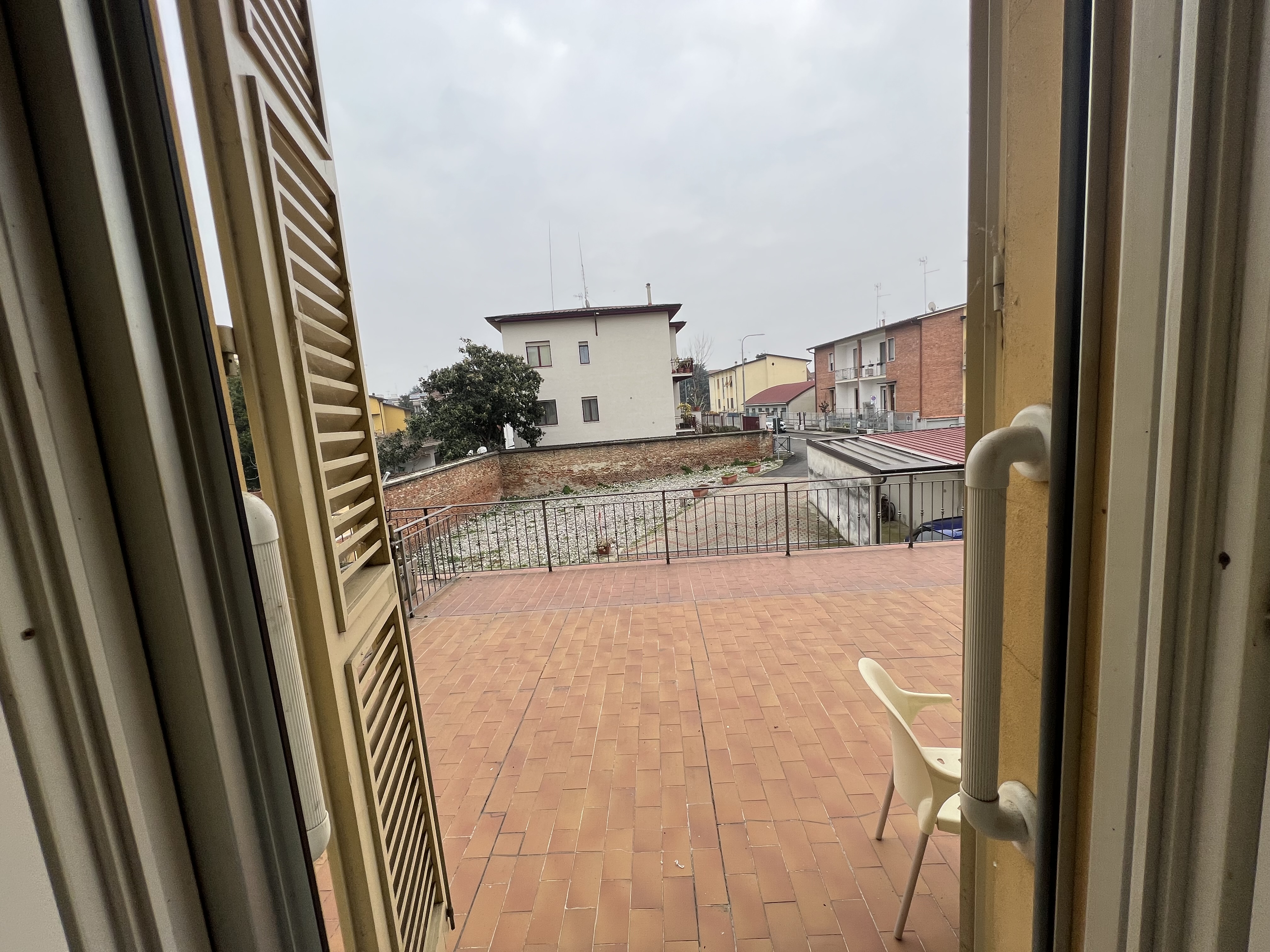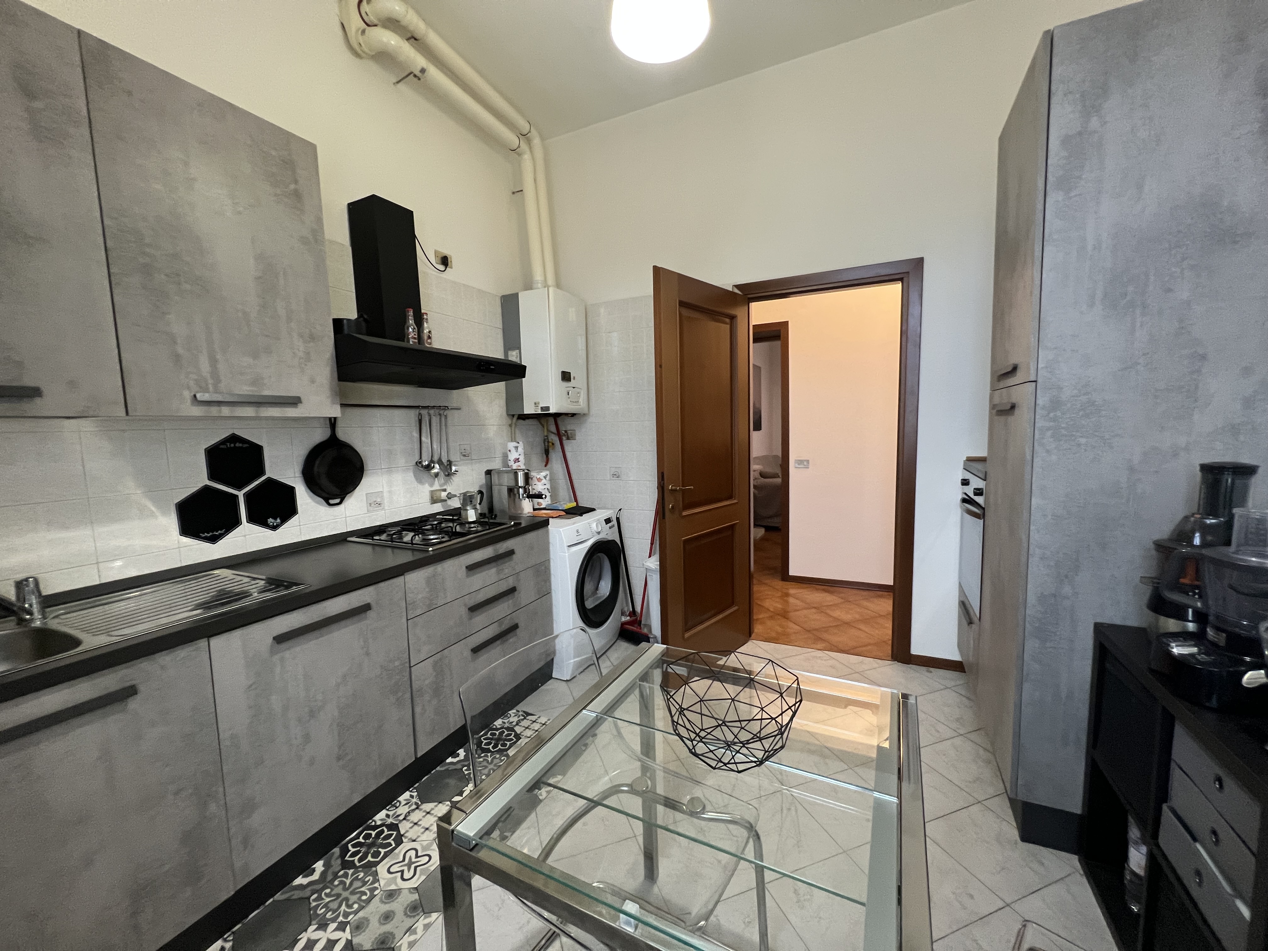Luminoso appartamento in piccola palazzina signorile e composto da ingresso, corridoio, soggiorno ampio, cucina abitabile con terrazza ampia, due camere letto, bagno, garage doppio e cantina.