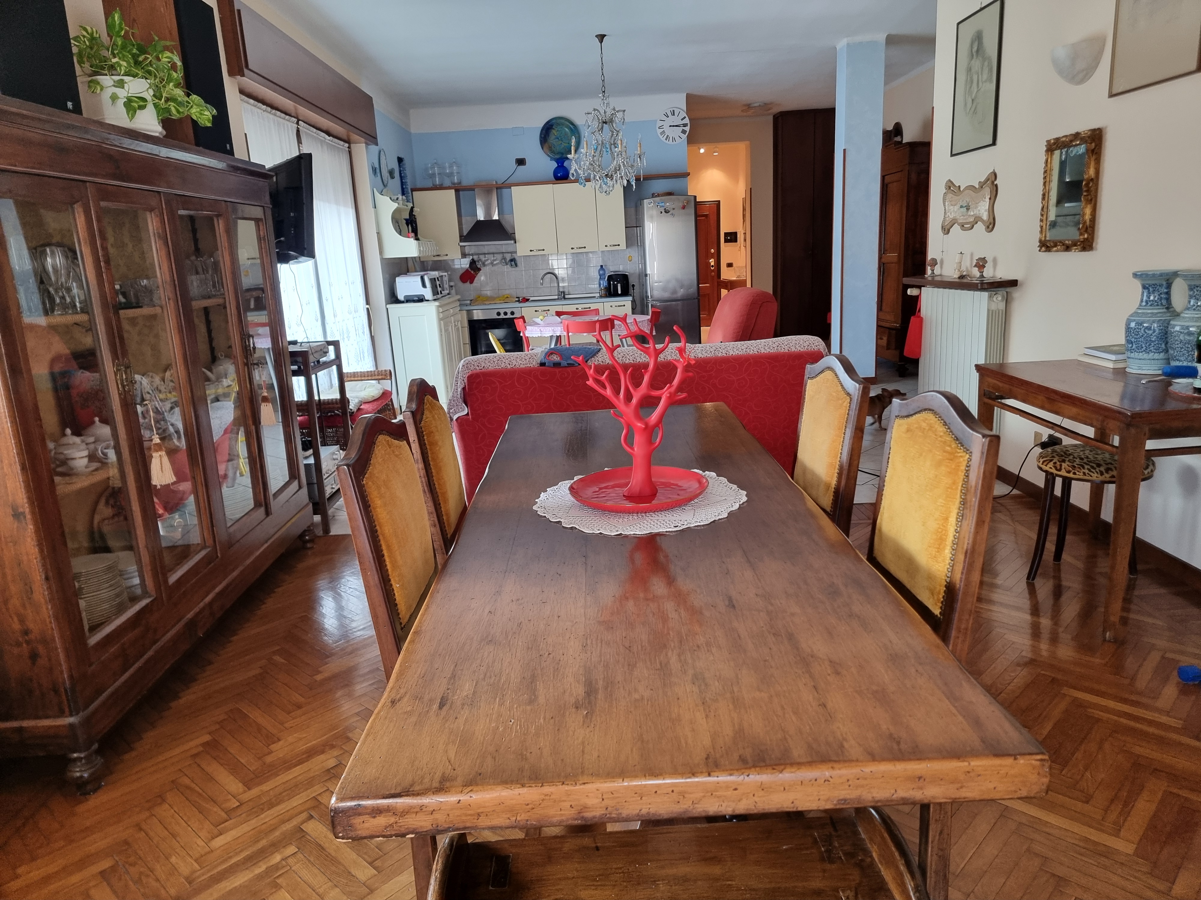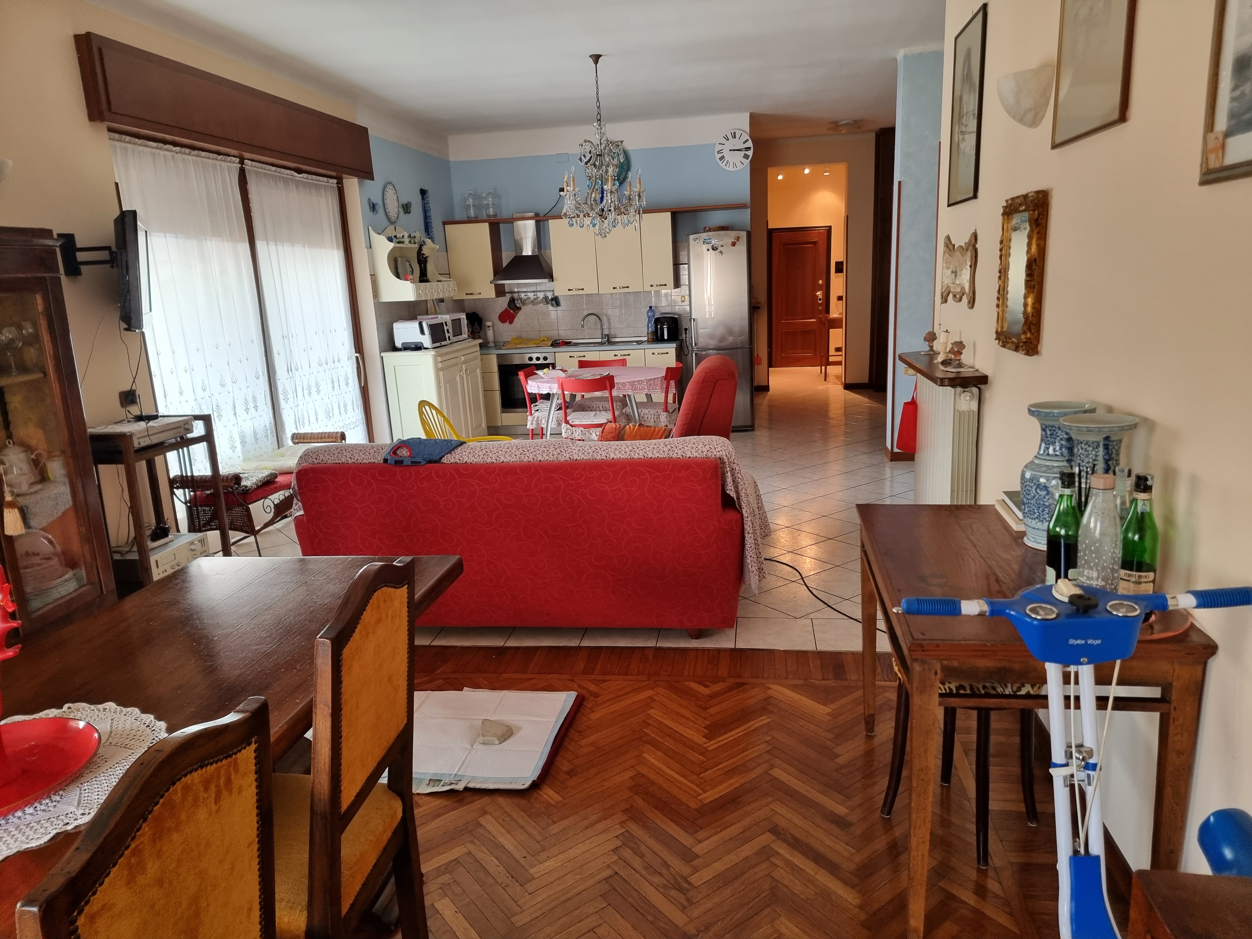 In contesto di 12 unità immobiliari, appartamento all’ultimo piano (secondo) di ampia metratura (115 mq) composto da ingresso, ampia zona giorno openspace molto luminosa, disimpegno, due camere da letto matrimoniali, doppi servizi entrambi finestrati; possibilità di ricavare la terza camera da letto. L’immobile è dotato di tre ampi balconi e da una cantina ampia. Posto auto condominiale e possibilità di acquistare un garage di 18 mq. L’immobile è stato ristrutturato vent’anni fa e non necessita di interventi di manutenzione. Serramenti in legno con doppio vetro, tapparelle elettriche; pavimenti in mono-cottura e parquet. Libero in 3/4 mesi dal preliminare.